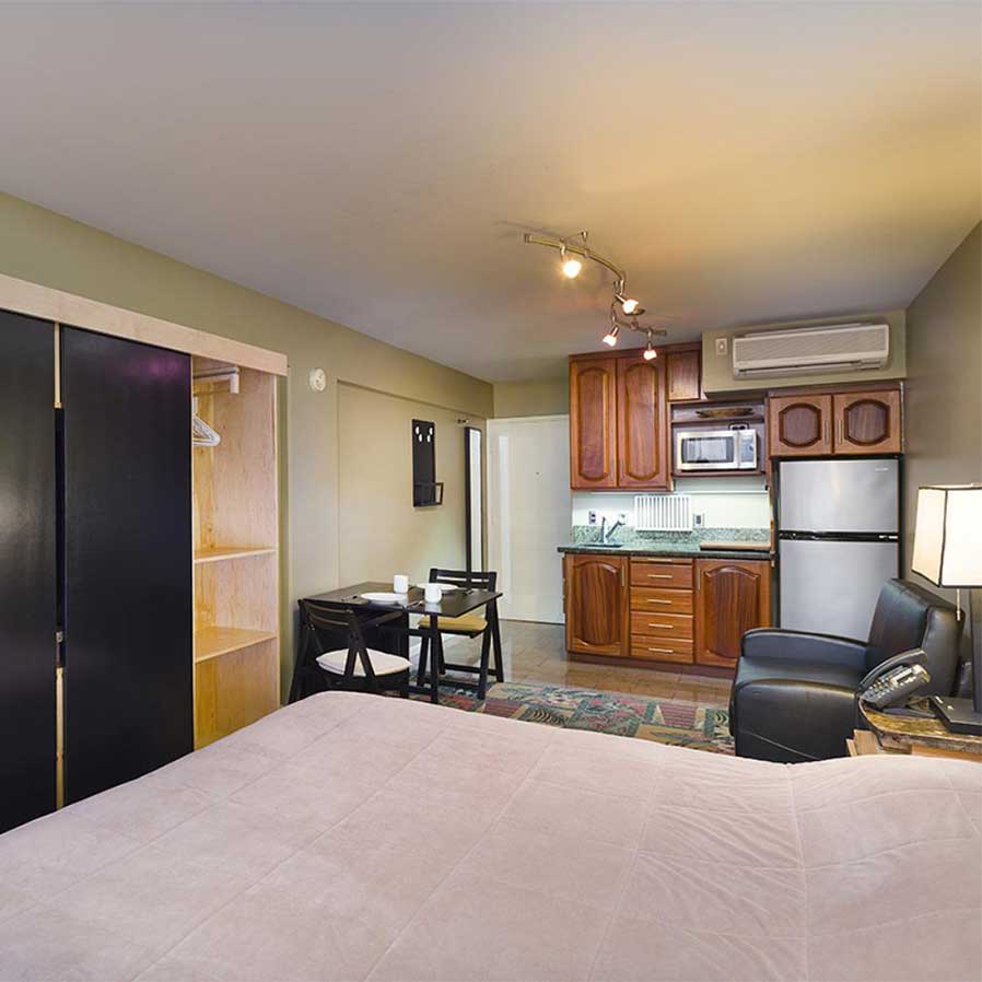各ユニットには家具が完備されており、リネンが含まれ、調理器具付きの簡易キッチンが備わっています。ワイキキが提供するすべてを探索したい場合でも、単にラナイからの眺めを楽しんだい場合でも、マキープロパティはハワイでの休暇に最適な場所です。